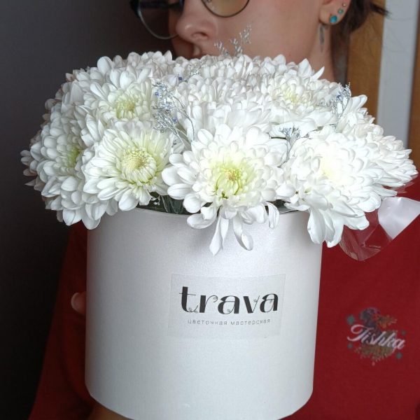 8 марта ✅ Белая хризантема в шляпной коробке в Чёрмозе